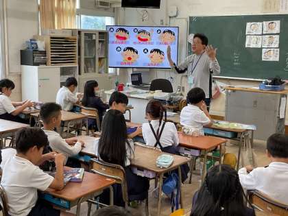 3年生では、今年4月から新しく始まった「外国語活動」の学習をしていました。みんな積極的にコミュニケーションをしようとしていました。