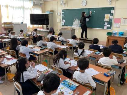 1年生では、国語科の学習でひらがな「ぬ」と「ね」の書き方について勉強していました。ひらがなも段々と難しくなってきましたが、集中して取り組んでいました。