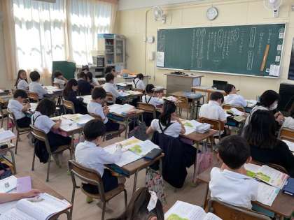 4年生では、国語科で「ヤドカリとイソギンチャク」について学習していました。説明文の構造理解と本文から重要な語句の読み取りをしていました。