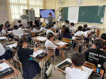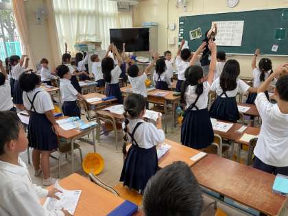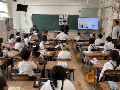 3年生では、外国語活動でCーNETの先生とのコミュニケーションをしていました。質問に対してCーNETの先生が英語で答えてくれます。みんなネイティブな英語に耳を傾けて聴いていました。