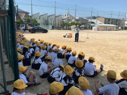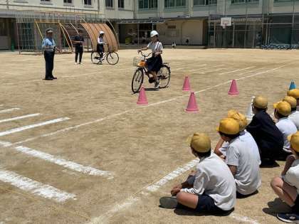 本日、平野警察の方にお越しいただき交通安全教室を実施していただきました。道路を安全に横断する方法や安全に自転車の運転をする方法について講義していただきました。
