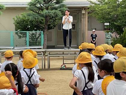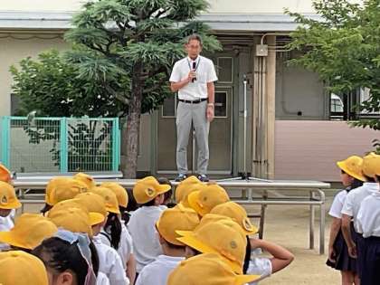 校長先生からは、先週実施されていた「あいさつ週間」のお話がありました。あいさつの大切さと「あいさつ週間」に関わらず、これからもあいさつをしっかりして、よい1日のスタートを切り、よい1日の終わりを迎えてほしいというお話がありました。