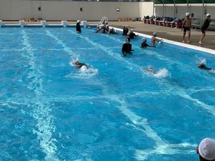 4年生では、体育科で「プール水泳」の学習をしていました。コースに分かれてそれぞれの泳力に合わせて学習をしていました。