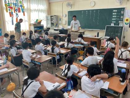 1年生では、国語科で「のりものクイズ」にチャレンジしていました。ヒントから連想できる乗り物の名前を考えていました。