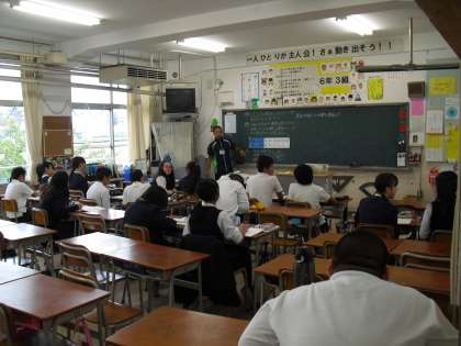 この日は、学級を2つに分けて、学級教室と学習室で授業を行いました。