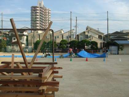 (下)そのころ運動場では、次の準備に向けてPTA実行委員のみなさんが・・・・