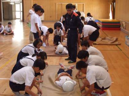 夏休みが明けてすぐに、小学校と消防署、地域と連携した防災教育の充実を図るため、2・6年生で防災学習を行いました。学年をわたった継続した取組となるよう、工夫していきたいと考えています。