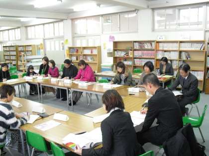 本校が読書活動に力を入れていることから、平野南小学校の図書室を会場に選んでいただきました。本校からは「ブックリン」の皆様が参加され、日ごろの取り組みや、本年度初めて実施した「えほん広場」についての報告をしていただきました。