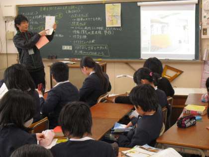 このようにスクリーン(簡単に本体より引き出して、黒板をスクリーンにできます。)とプロジェクターを利用して授業を進めることができます。