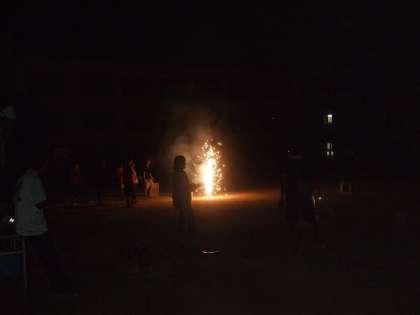 キャンプファイヤーの締めくくりは花火!点火係はPTAソフトボールクラブの皆さんです。