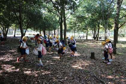 たくさんの緑に囲まれた中でお弁当を食べ、大芝生広場で元気良く遊ぶことができました。