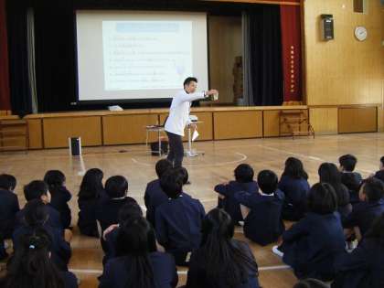 6年生は、薬剤師の先生から薬の正しい飲み方や、薬物の恐ろしさについて学びました。薬物を投与されたねずみがうつろになっている姿に、思わず笑いが起こっていましたが、本当に怖いと思いました。