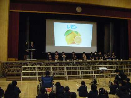 2月28日、朝全校集会が行われ、栽培委員会の発表がありました。