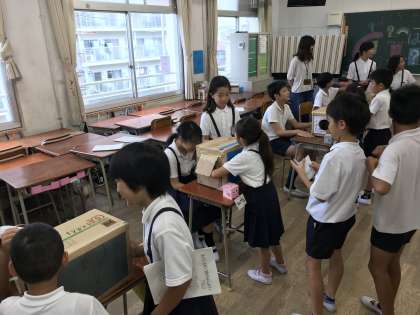 学級ごとで、いろいろ工夫して、出店するなど楽しく活動しています。そして、お兄さんやお姉さんなどとペアになって、主体的に取り組んでいます。