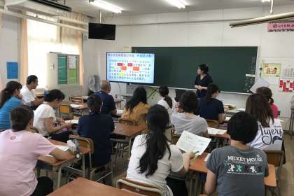 市教委から、指導教諭の先生による、英語訪問研修会を行いました。一日の授業を終えての研修ですが、先生方も真剣に取り組んでいます。