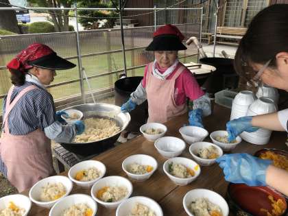 11:00昼食です。鯛めしをいただいています。おいしいと喜んでいます。