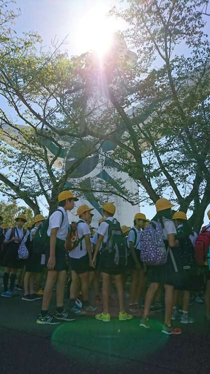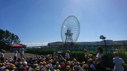 万博記念公園に着きました。天気がよくて、とても気持ちのいい青空です。