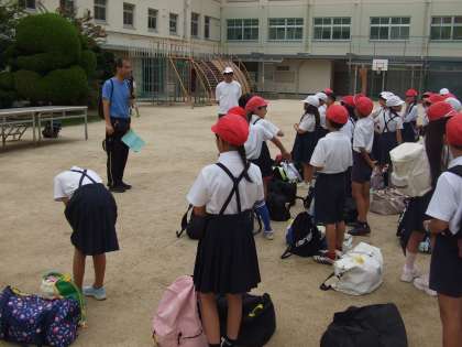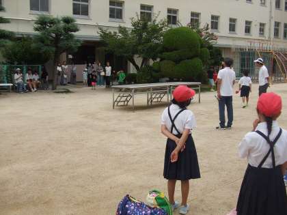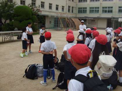 今日から待ちに待った「林間学習」です。出校式は曇り空の中、涼しく行うことができました。