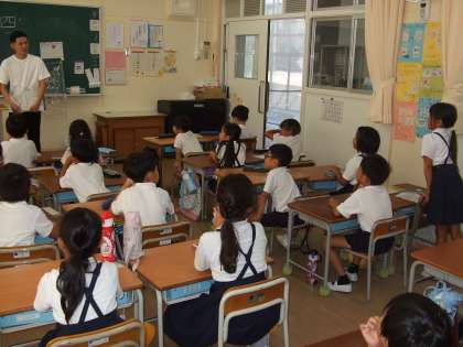 朝会のあとは早速、教育実習生を担当の学級まで案内しました。子ども達からたくさんの質問があり、一つ一つ質問に答えていました。