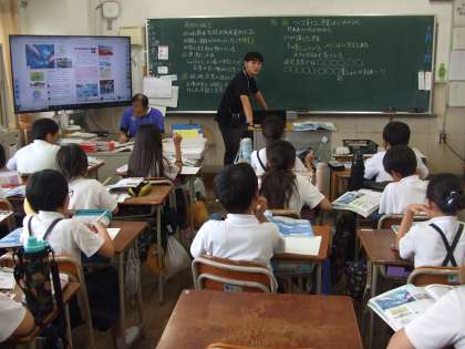 5年生では、社会科で日本の漁業について学習していました。教科書を読み取り「養殖」についてノートにまとめていました。
