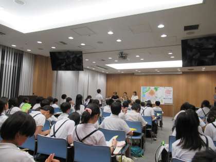 資料館で学習した後は、研修室で証言者さんのお話を聞くことができました。