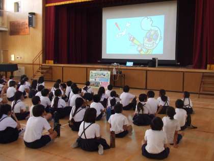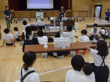 本日、水道局の方にお越しいただき4年生に向けて水道教室を実施していただきました。