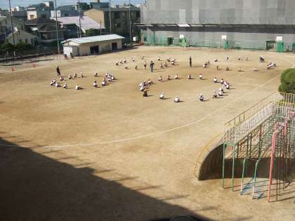 3年生では、体育科で運動会の団体演技の練習をしていました。綺麗な円に隊形移動し、踊ることが出来ていました。