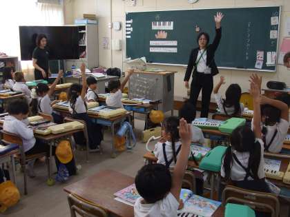 1年生では、音楽科で鍵盤ハーモニカの指使いの学習をしていました。小指でソをおさえるのが難しそうでしたが、一生懸命頑張っていました。