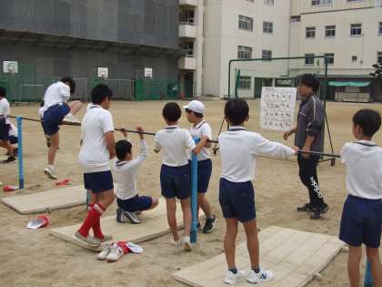 6年生では、体育科で「鉄棒運動」の学習をしていました。鉄棒の下にマットを敷いていろいろな技に挑戦していました。