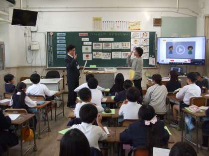 今年度、平野南小学校では、外国語の授業の研究に取り組んでいます。