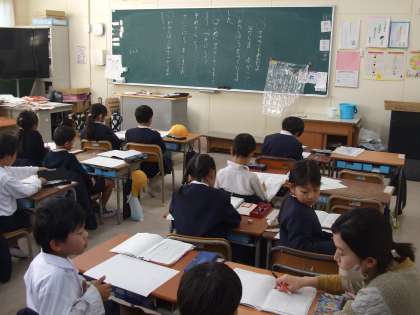 1年生では、国語科で「作文」の学習をしていました。黒板の例を参考に自分の作文を書き進めていました。