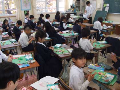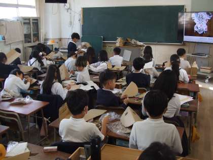 3年生では、図工科でダンボールを使ったお面作りをしていました。今月は作品展が予定されています。完成に向けて一生懸命頑張っていました。