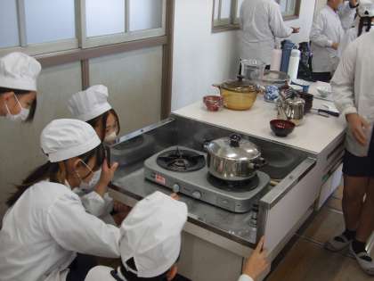 5年生では、家庭科で「ご飯とお味噌汁」の調理実習をしていました。班で協力して安全に気をつけながら調理していました。