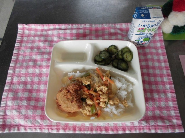 今日は、たまごの個別対応献立です。たまごアレルギーの児童も食べられる献立です。