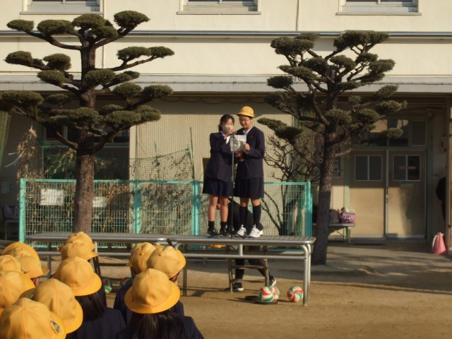 児童会からは、今週の「生活みなおしウィーク」の告知がありました。また、運動委員会からは、「冬の運動週間(長なわ)」の告知がありました。