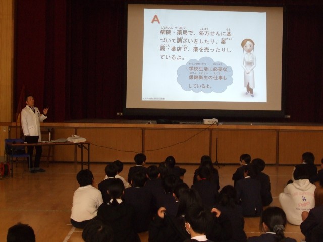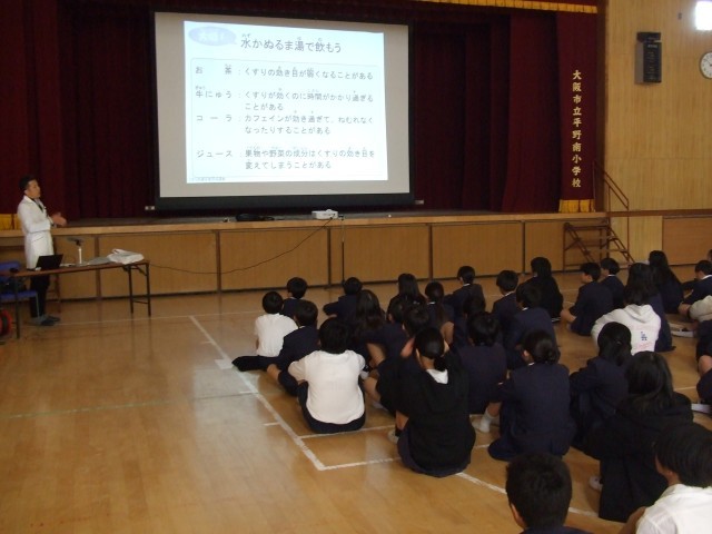 スライドや動画を使用し、薬の効果や副作用、正しい使い方などを学ぶとともに薬物の危険性についても教えていただきました。