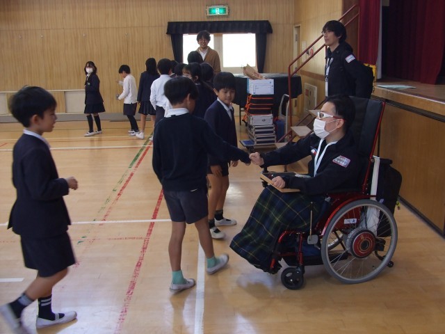 本日、大阪発達総合療育センターの方と東京パラリンピック銅メダリストの中村拓海選手にお越しいただき、3年生向けに「ボッチャ体験教室」を実施していただきました。