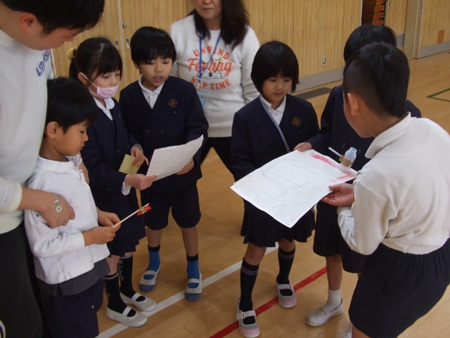 本日、2年生が生活科の学習で作成した手作りおもちゃの体験会を1年生を招き実施してくれました。1年生が楽しんでくれているのを見て満足そうな2年生でした。