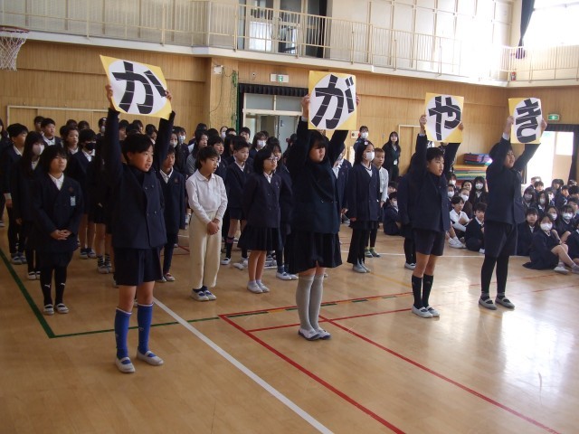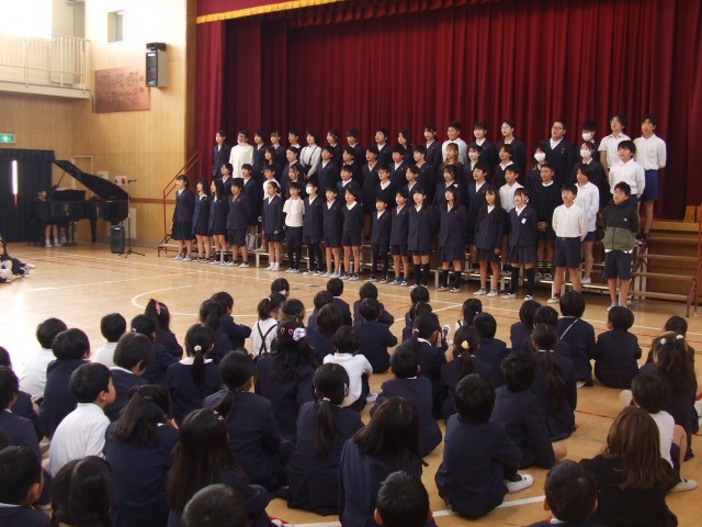 6年生からは、お返しに各学年へ向けてのメッセージと合唱がありました。