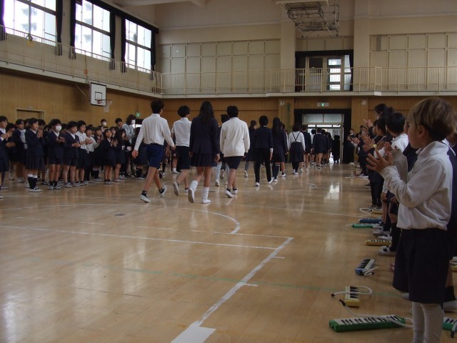 1年生からは、合奏と英語歌唱のプレゼントがありました。