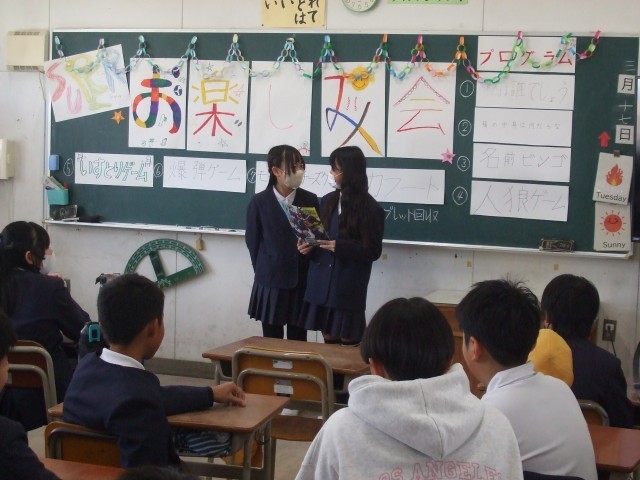 6年生では、卒業式直前のお楽しみ会をしていました。クイズやゲームを楽しみ小学校生活最後の思い出作りをしていました。