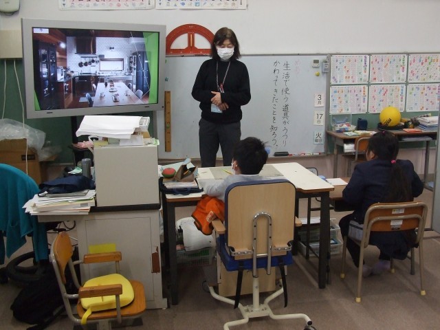 なかよし学級では、抽出学習で社会科の「道具のうつりかわり」について学習していました。100年前、50年前、現在の台所の写真を比較することで暮らしが便利になってきていることに気が付くことができました。