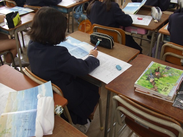 4年生では、国語科で教科書の詩の視写をしていました。集中して、ていねいな字を書くようにしていました。
