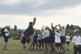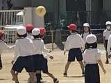運動場では、2年生がボールを使って、元気よく動き回っています。