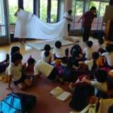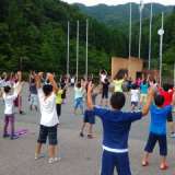 朝の体操の風景。眠たそうな子もちらほらいますね。2日の活動開始です!