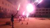 キャンプファイヤーの締めくくりは花火!点火係はPTAソフトボールの皆さんです。