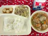 9月19日(水)の給食は、お月見の行事こん立として“ごはん・牛乳・鶏肉とさといも...