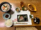 昼食の鯛めしを、おかわり自由でおいしくいただいています。