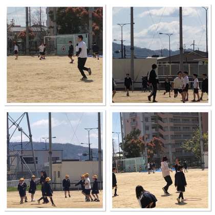 子どもたちが大好きな休み時間。いいお天気なので、運動場やニコヒロで笑い声がたくさん聞こえます。