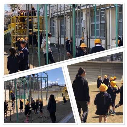 その中で先生方も混じって楽しそうなこと。鬼ごっこで必死で追いかける先生。でも、子どもたちはとても逃げるのが上手です。どちらも笑顔がいっぱいでした。ニコヒロでは1年生や2年生が遊具を使って遊んでいました。
